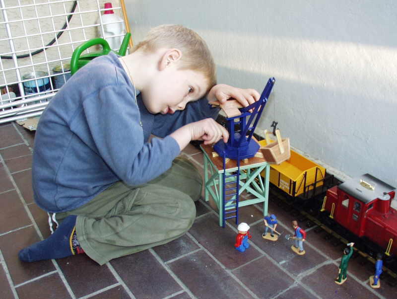 Im August 2003 haben wir den Holzmodellbausatz Kran zusammen gebaut. Es war unser erster Holzbausatz.