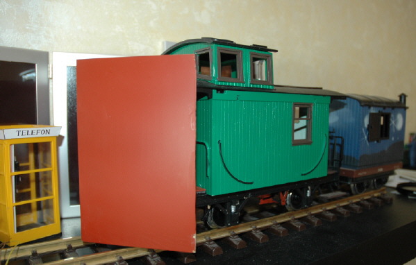 Aus einem Toytrain Caboose Wagen wurde ein einfacher Schneepflug. Den Pflug habe ich aus drei Messingblechen zusammen gelötet.