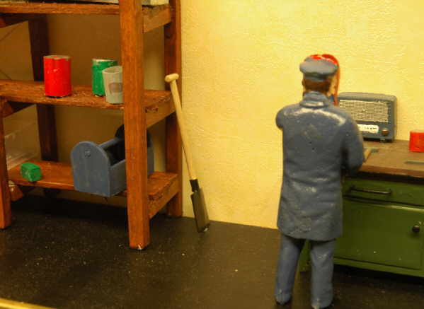 Der Spaten aus einem Stück Messingblech und einem Schaschlikspieß.