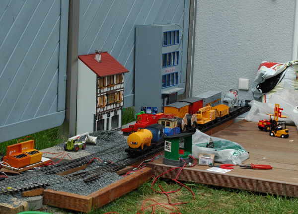 Im Sommer 2005 begann der Anlagenbau im Freien. Der Arbeitszug startete. |