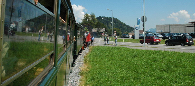 Den ersten Sonderzug nach Schwarzenbach haben wir leider verpasst, er kam uns schon auf dem Hinweg nach Bezau entgegen. |