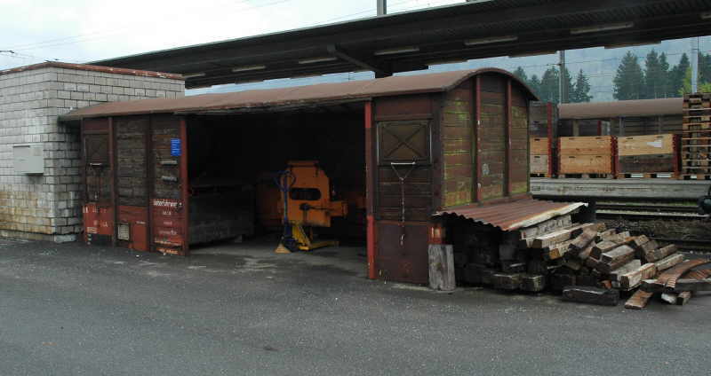 Ein Wagenkasten als Schuppen umfunktioniert. Das wäre doch was für die Modellbahner...