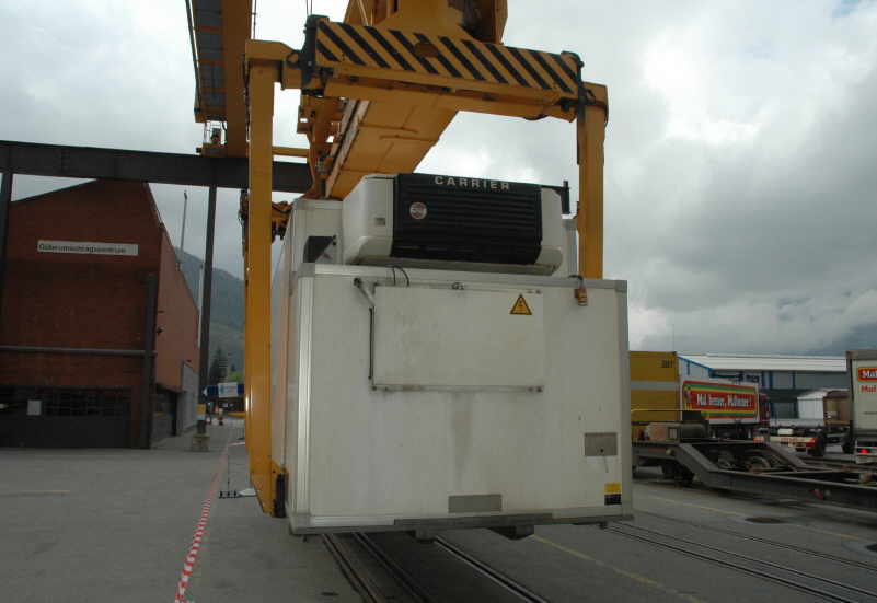 Die Schienen werden beweglich auf den Wagen gelagert.
