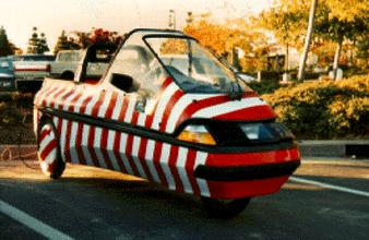Viel ist vom Original nicht mehr übrig. Das el hat zwei Sitzplätze hintereinander, eine komplett andere Hinterachse und Technik. Er war mit diesem Fahrzeug in den ersten Jahren der "Tour de Sol" immer ganz vorne dabei. |