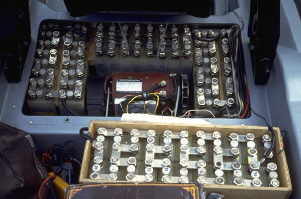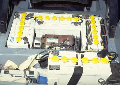 Saft STM1.2V 113Ah Nickel cadmium batteries, model JUICE, with and automatic electrolyte filling system was offered by the company JME Heidelberg. The somewhat low system voltage of 28,8V could be increased by adding further cells in the trunk. |