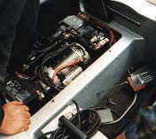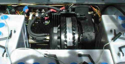 Stefan Sachs of the OECOSACHS inserted the proven disk motor, which moves also substantially heavier vehicles. The City-El could run thereby problem-free 120 km/h. The speed is however limited on 55 km/h. The belt drive with engine mounting plate was heavily modifed and gets along now without idlers. The electrical wiring simplified itself, with cable diameters increased to 35mm. Result of the first tests: 55km/h, longer upward gradients with 30 to 40km/h, 3Âh on 29km (4,3kWh/100km).