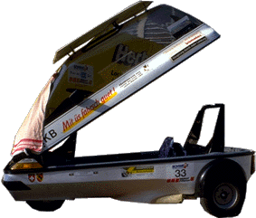 My own vehicle, constructed in 1989, also some has modifications. The defective closed hood has been converted to a Cabrio. The front side windows are retained, and the upper edge of the hood strengthened with an aluminum frame. The convertible top is stitched by a professional, domestic sewing machines cannot handle it. |