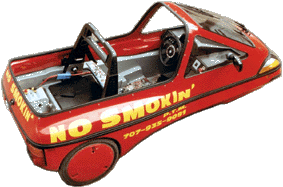 Peter has considerably modified his vehicle, with more batteries and a larger motor, and holds several 1/8 mile speed records with it.