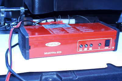 | Auf dem Markt gibt es verschiedene Schaltnetzteilladegeräte die auch für das el passen. Persönlich habe ich ein Hypercon Ladegerät, das war eigentlich zur Telefon- Stromversorgung gedacht, sowie ein ZIVAN K2 (Bild). Das Zivan leistet 2,4kW (60V/40A) für mein el mit 48/42Volt Nennspannung. Andere Hersteller sind z.B. Brusa ... Das abgebildete Ladegerät wurde 1998 durch eine neue Baureihe ersetzt |