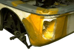 With experience in plastics processing, el can be repaired relatively easily with aramid fibers and glass fibers. Importantly is the expert estimation of the damage. With larger damage the complete tub is to be exchanged. In the picture here an auto going approx. 70km/h drove into a City-El traveling 40 km/h. The bowl was pushed up to the wheel housing, as well as broken at the taillight.