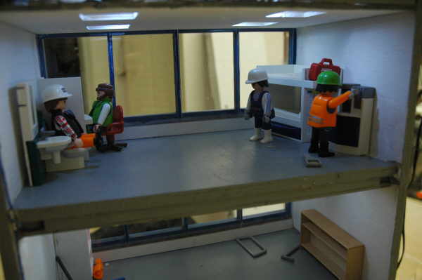 Die Bauarbeiter sind noch am Werk und haben Ihre Baubude im Obergeschoss bezogen.