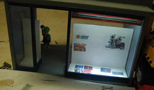 Im Erdgeschoss gibt es ein Spielzeuggeschäft. Der Eingangsbereich und die Schaufensterbeleuchtung links fehlt noch. |