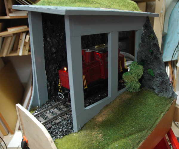 Mein Krokodil bei der Einfahrt. Eine Oberleitung werde ich vermutlich nicht bauen, wäre aber noch möglich. |