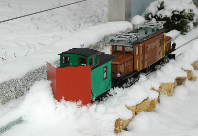 Aus einem Toytrain Caboose Wagen wurde ein einfacher Schneepflug. Den Pflug habe ich aus drei Messingblechen zusammen gelötet.