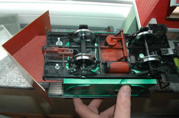 Die Achsen habe ich gegen Metallachsen ausgetauscht, eine mit Stromabnehmern, für die noch kommende Beleuchtung.