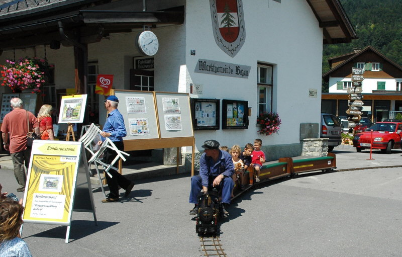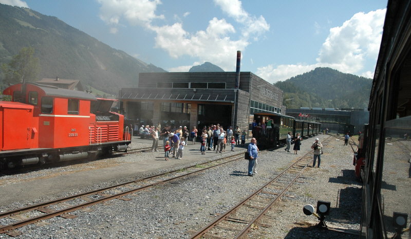Im Bahnhof Bezau waren verschiedene Loks ausgestellt und es fuhren den ganzen Tag verschiedene Sonderzüge nach Schwarzenbach und zurück.